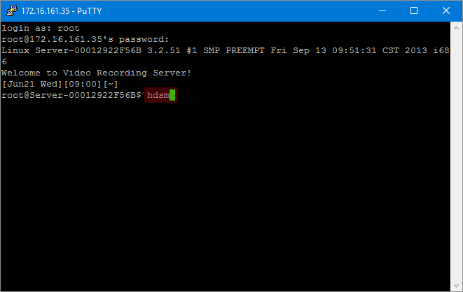 - 鍵入 hdsm 來進入網路監控錄影機系統管理介面;