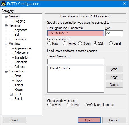 - 在"Host Name (or IP address)" 輸入欄位、填入IP 位置