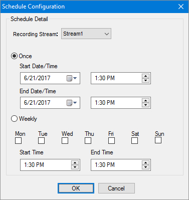 - 若設定為 Scheduled (排程)錄影,請不要忘記配置排程時間,如下圖所示。