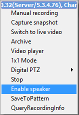 - 要完成雙向音訊,請將喇叭連接到攝影機。 在播放視窗下點擊滑鼠右鍵並選擇 Enable speakers來啟用。