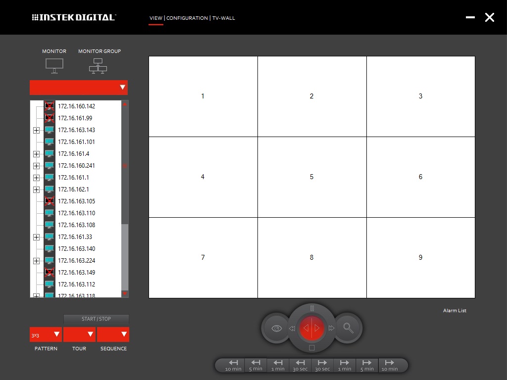 Instek Digital 電視牆的遠端控制介面可以管理和監管電視牆. 可以同時讓多位保全經理監看影像畫面和在緊急時得到最快的回應. 此應用程式可以安裝在數位影像監控平台上, 並透由同一段網路與影像備份伺服器和數位電視牆連結. 此套遠端管理軟體讓電視牆的功能更完善. 不僅使用容易上手, 在緊急狀況時, 還可以將影像分享到不同區的電視牆. 舉例來說, 當某分局在追查嫌犯時, 若需要從其他分局調閱該嫌犯的影像時, 就可以使用這套電視牆分享影像的功能.