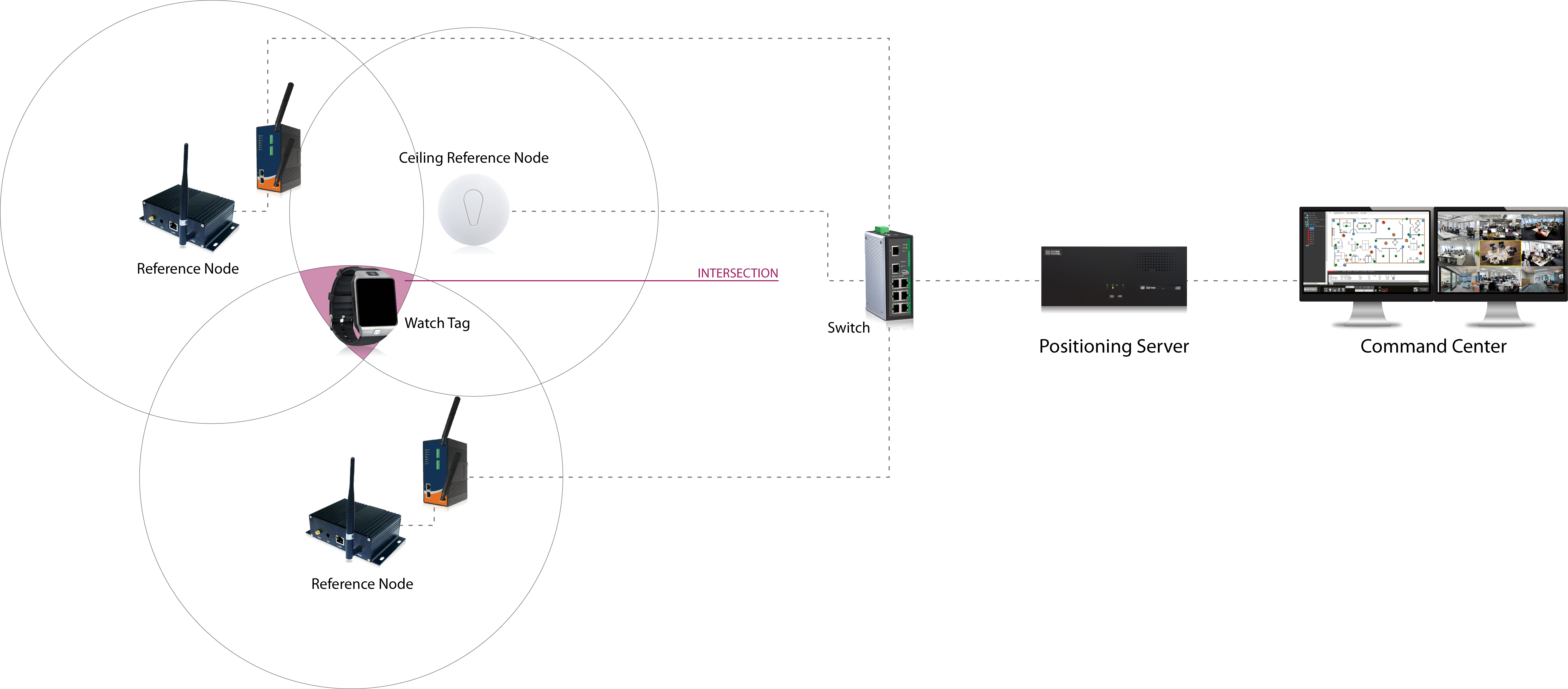 Instek Digital™ Optrail automatically identifies and tracks the location of objects and/or people in real-time within indoor locations. Wireless tags are attached to an object or worn by a person and the fixed reference node receives a wireless signal from the tag to determine the location.